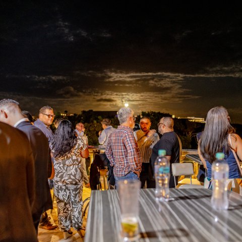 Esnan presente por a disfruta di un ambiente placentero cu bunita bista riba e area di San Nicolas. Presidente di directiva, Sr. Diederik Kemmerling a comparti algun palabra señalando e importancia di networking y conecta cu otro den e mundo di negoshi.